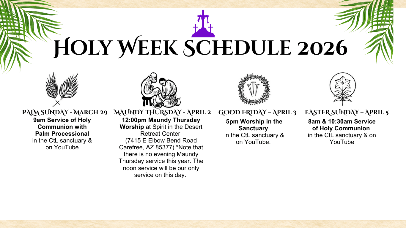 Our beautiful, comfortable, friendly neighborhood church welcomes you – just as you are. Each 9:00AM Sunday service offers inspirational music and thought-provoking messages. Communion is open to everyone. Afterward, you can enjoy a wide variety of homemade treats, soda, coffee and tea. We also stream our services live or you can watch us later online at your convenience at www.ctlcarefree.org